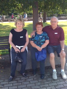 The visit to Fort Erie was very enjoyable; in fact, we made some extremely special memories. Don (the grand poopah) was not feeling well that day due to the fact that he had been diagnosed with pneumonia the day before we left but absolutely refused to delay the trip. On this day, he chose to stay in the car while the rest of us toured. Jim was the only one who wanted to pay to take a guided tour. Carolyn and I went to the Fort but only to take pictures and see the fort on our own. We met some very interesting characters. One was in Indian costume and confronted Carolyn about touching items in a tepee on the grounds. He did it quite kindly, and they became friends. Of course, she makes friends with everyone–one of those people who never meets a stranger!! There were also numerous English soldiers, canon fire, and others in costume. The most interesting person we met was a man picking up trash. He decided to stop beside where Carolyn and I were waiting for Jim and tell us his “very exaggerated” life story. He was married to a marine biologist who traveled extensively at her company’s expense, but he was always able to accompany her for free on these trips. He was 60 years old but had not married until he was 40. He told us what an exciting ride he has had (his words). Carolyn gave him the nickname “garbalogist”. The double entendre in this story is evident. We have shared a lot of laughs about that afternoon. I suspect that this particular event occurred because of Carolyn’s short pants. See the picture below.