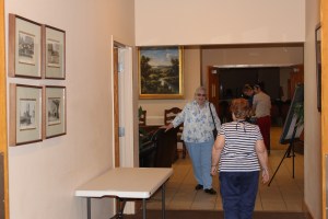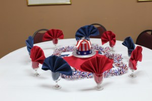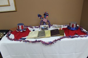 At lunch time we called the guys and had them meet us at the Eagle Tavern, a restaurant where the menu was 18th century cuisine and waiters/waitresses were dressed in the garb of the time. Of course, the restaurant was about as far as possible from where our husbands were in the Museum. (In fact, we walked over 6 miles total that day.) It was over a mile to where we were, so we waited patiently by touring more buildings. Finally. when everyone arrived– hungry and thirsty, we got a table. The place was quite crowded, had no electricity, lots of windows for the light to shine in, lamps on the tables–when needed. There were three items on the Bill of Fare. The food was quite different from what we were accustomed to. The other 3 people chose from the entree Bill of Fare, but I wanted just vegetable soup (which was also on the Bill of Fare ). I had not thought about the fact that in the 18th century they cooked mostly with carrots and celery—-which was what I got in my soup. It was extremely bland but interesting. I asked for some crackers or a roll. Sorry, no crackers, and you can’t order a la carte. A roll does not come with your meal. We had mint tea (the only cold beverage on the menu). Seconds were not allowed. As soon as the food was served, I snatched a roll off my husband’s plate. (He was given 2). The desserts were very good—buttermilk pie cherry cobbler, a couple other kinds that I don’t recall now. It was a wonderful experience, and we had a lot of laughs and met some very interesting people.