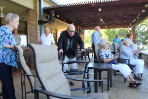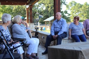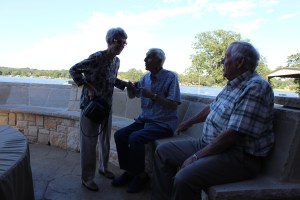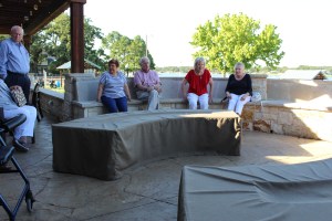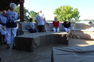 Day 6 we drove over to the Georgetown area and spend a wonderful afternoon and evening with my cousins. They have a beautiful rock home on the Escarpment, about 35 or so acres. The view was spectacular, a pond, lots of beautiful trees, a waterfall, a real deer, and a for- real buzzard. In fact, they are the only relatives that I have who have a pet scavenger. Their home is gorgeous and quite comfortable. We talked a lot, and snacked a lot. Everyone went for a ride in Jack’s newly purchased Fisker Karma. Judy served a scrumptious Italian dinner……everything homemade!!!!! After dinner we went down to their media center and watched “War Horse”. Jack did not like it very much, so I later gave it to him as a gift so he could watch it again whenever he wanted. ( Upon leaving we forgot to take the movie with us, but I thought I would just give it to Jack instead of having them send it to me.) Jack enjoys a good joke!!!!!!!!!!!!! We left their home on Saturday A.M.